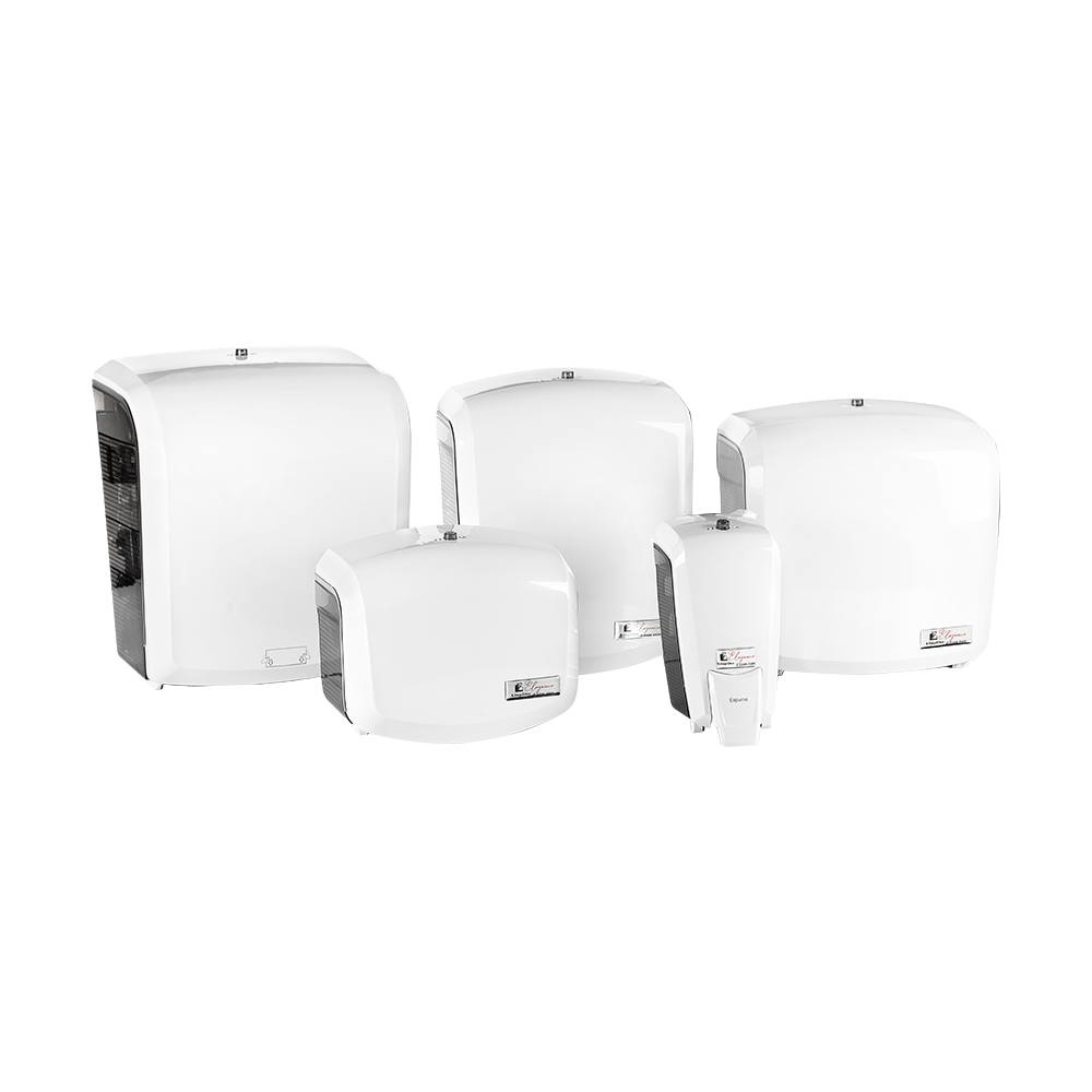 Sofisticação com visual clean. A versão Branca da Linha Elegance é perfeita para ambientes corporativos que valorizam estética e bem-estar. Além dos dispensers tradicionais, conta com suportes exclusivos como protetor de assento sanitário e descarte de absorventes, oferecendo mais conforto e higiene.